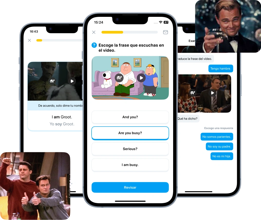 Lessons feature tasks based on clips from popular movies and TV shows, helping students master all aspects of English through real-life conversations carefully matched to their language level — so learning stays effective, enjoyable, and never frustrating.