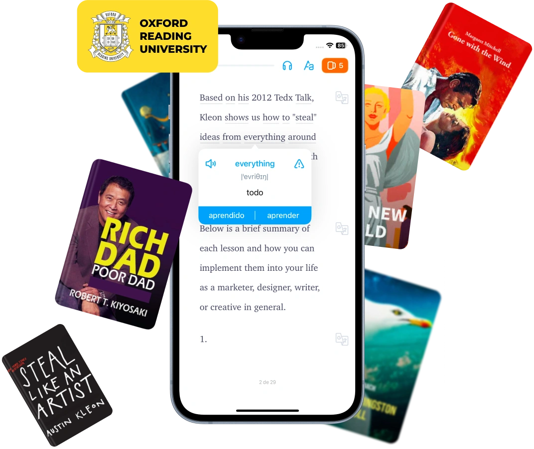 Students build vocabulary and academic language skills, get instant in-context translations, learn on the go with audiobooks, and enjoy classic and modern books that make English practice a genuinely positive experience — supplementing any textbook you use.
