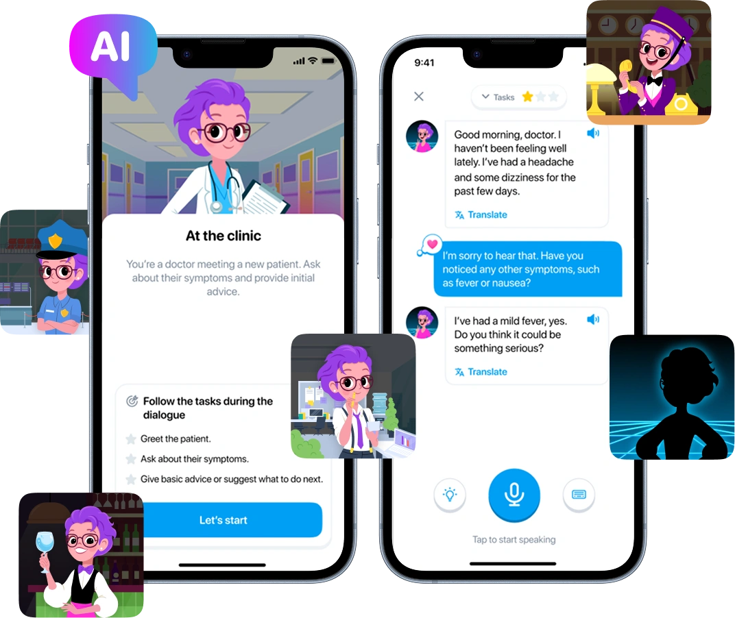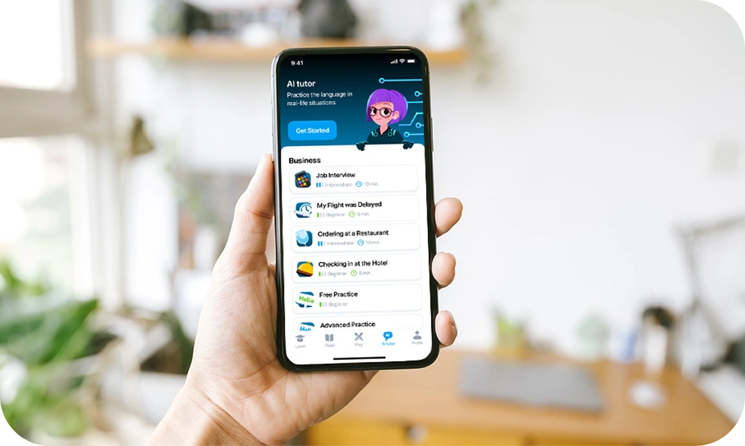 - Adaptive coaching that builds real-world speaking confidence